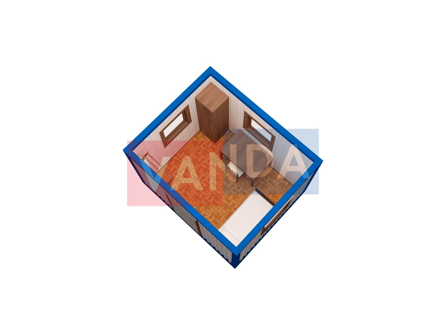 Металлическая бытовка без тамбура 5,85 x 2,4 - Оргалит ДВП